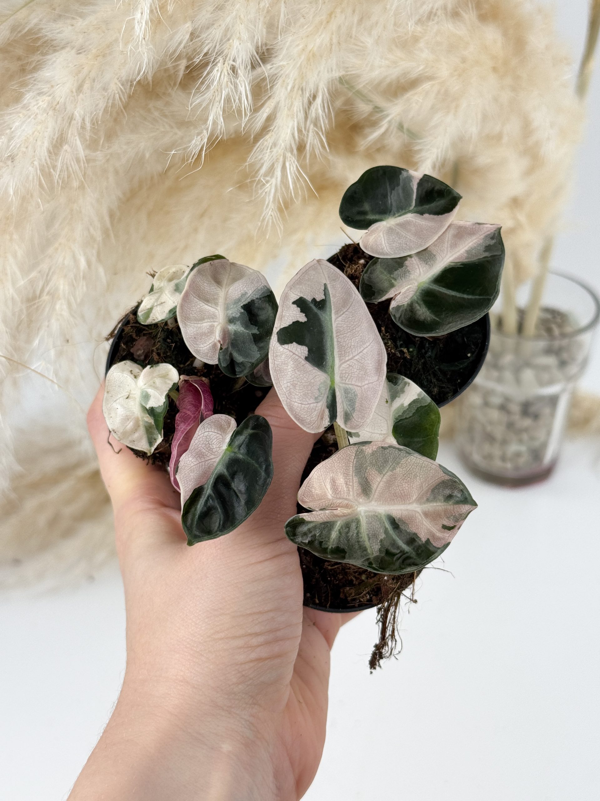 • Alocasia Bambino Pink Variegata