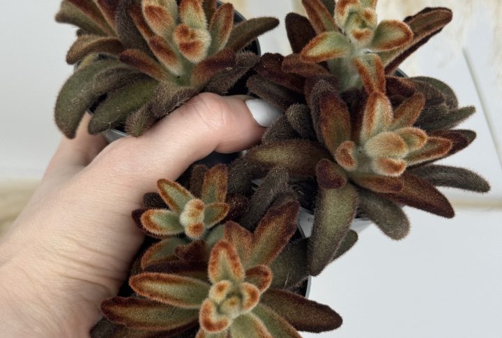 Typisch sind die dunklen, samtigen Blätter mit leuchtend grünen Punkten und rötlichen Adern. Der Wuchs bleibt eher kompakt.