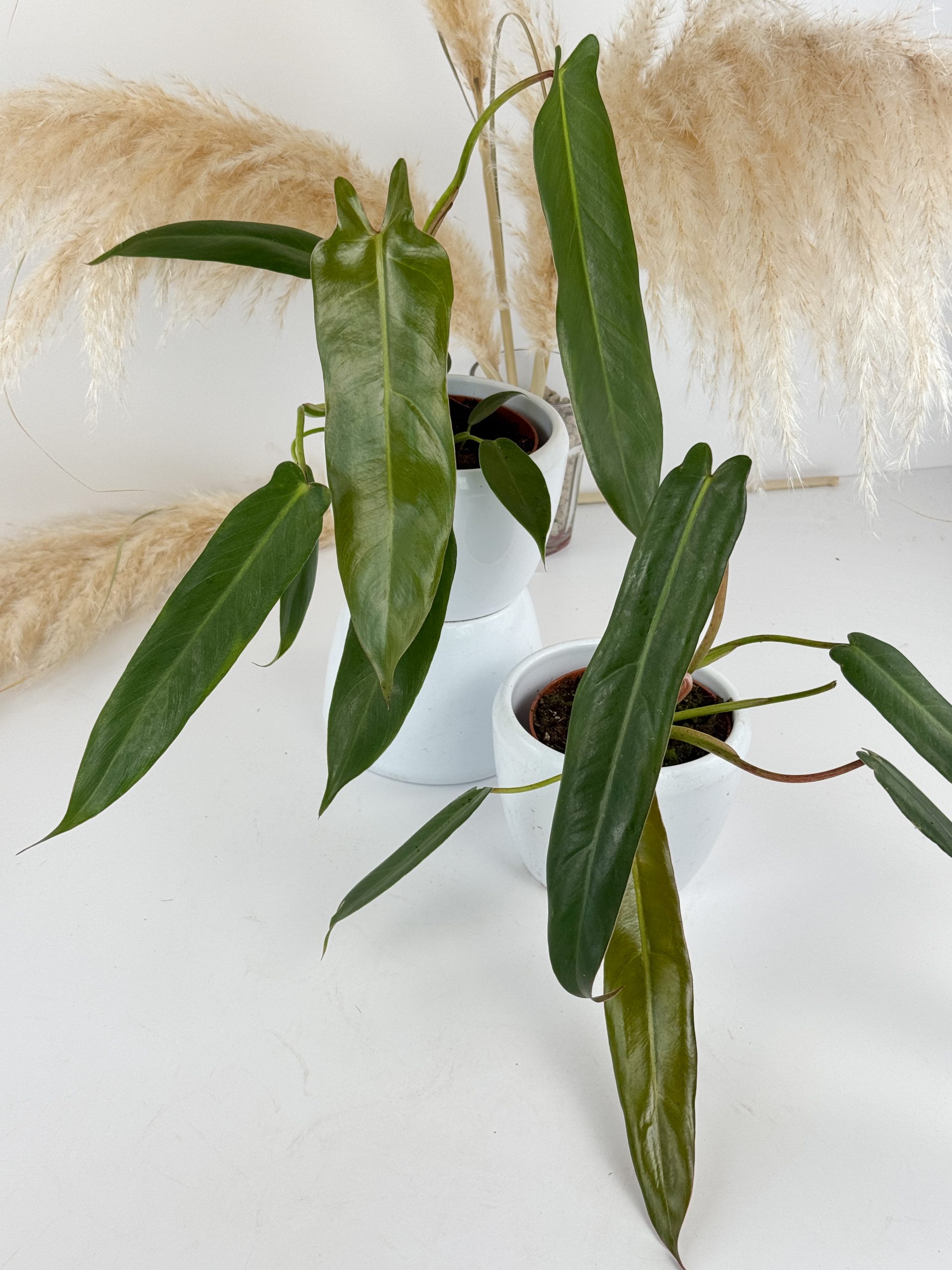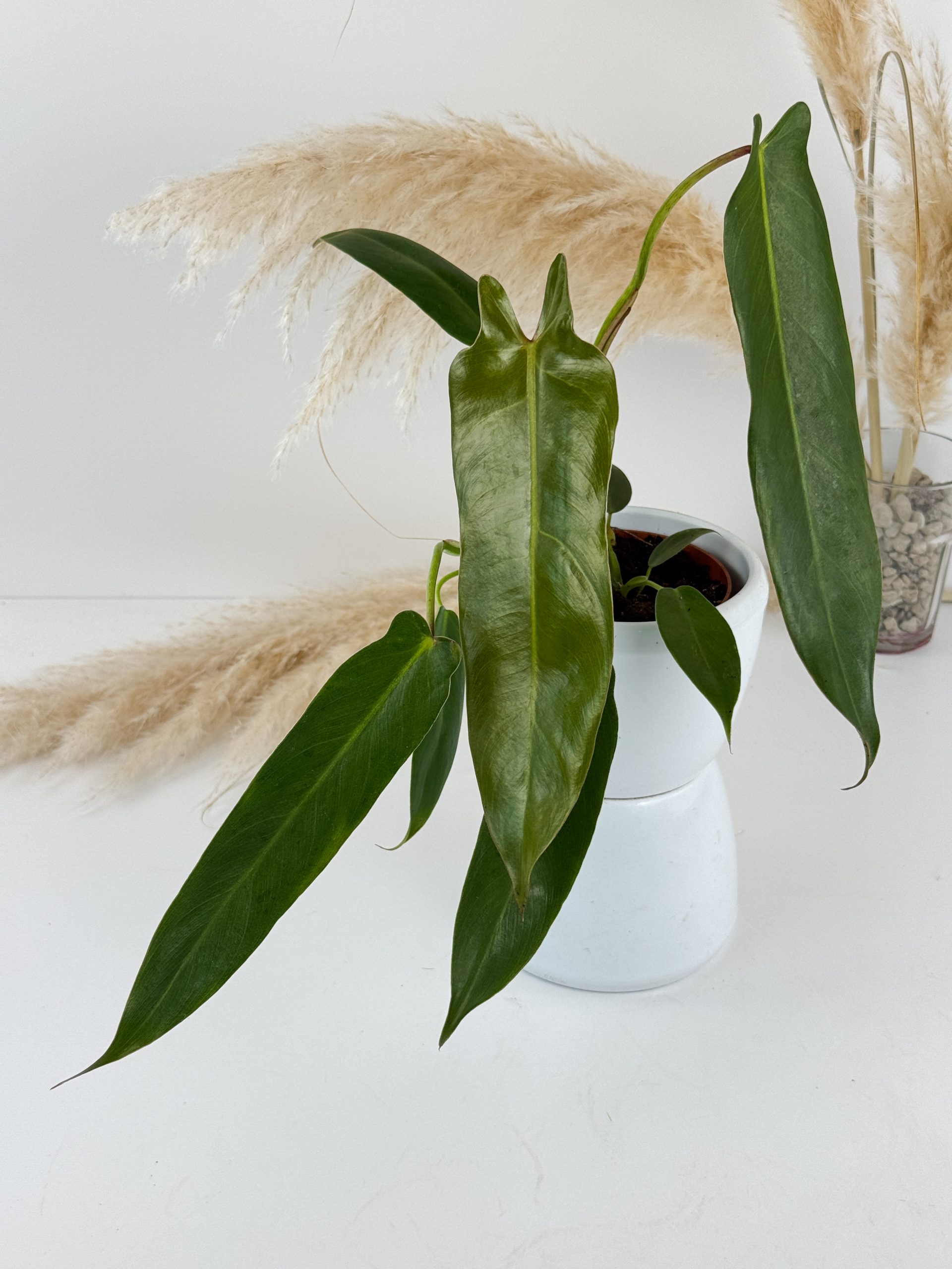 Der Philodendron spiritus-sancti zählt zu den beliebtesten Philos. Charakteristisch sind seine langen, schmalen, elegant herabhängenden Blätter, die der Pflanze auch in jungen Stadien schon eine sehr besondere Wirkung geben. Ursprünglich stammt die Art aus dem brasilianischen Bundesstaat Espírito Santo und wächst dort kletternd im feucht-tropischen Klima.