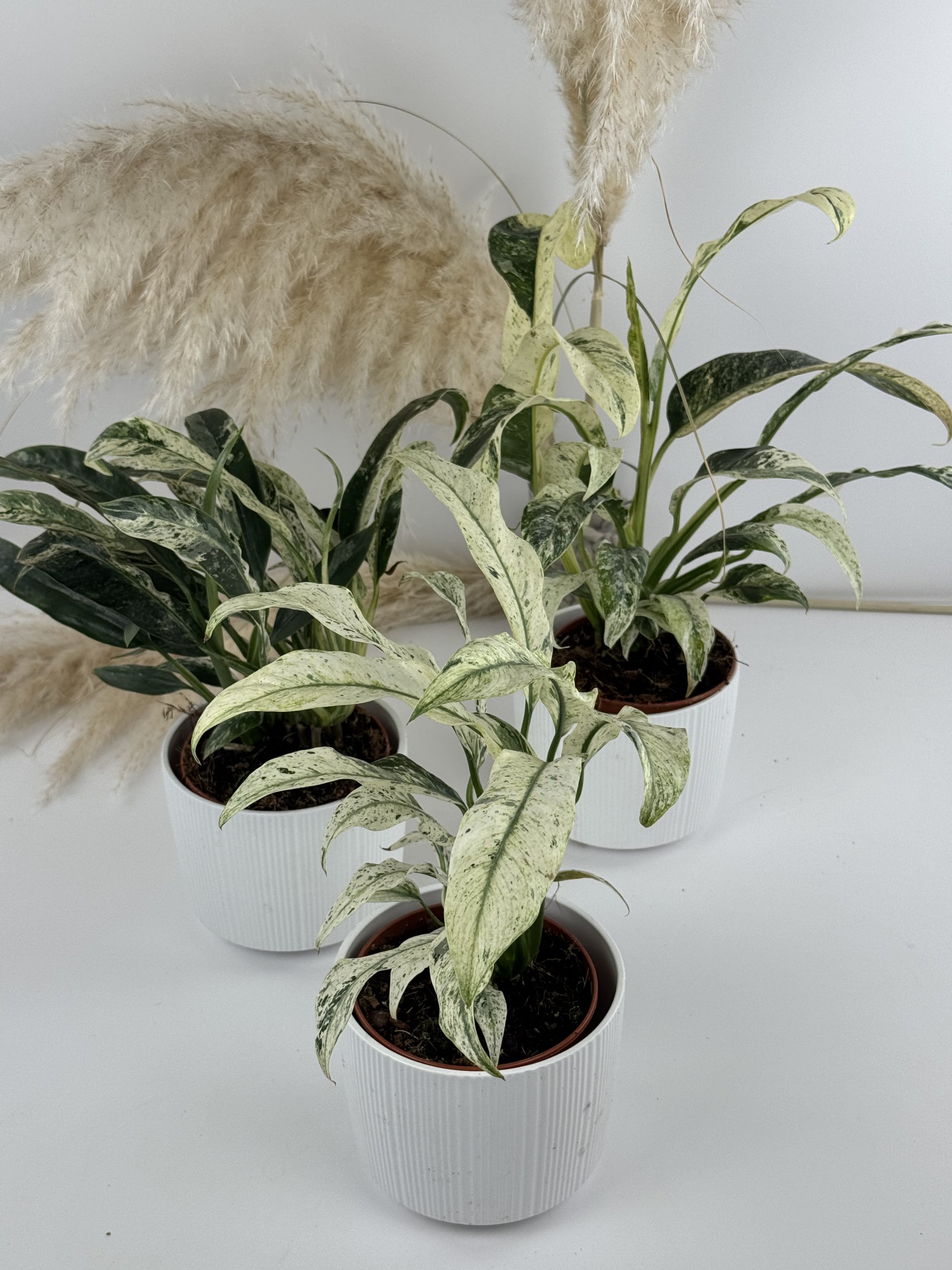 Die Rhaphidophora Puberula Variegata besticht durch elegante, langgestreckte Blätter mit unregelmäßiger heller Panaschierung auf dunklem Grün – von feinen Sprenkeln bis zu großen cremeweißen Partien – und ist in Kultur noch kaum verbreitet. Die Variegation macht jede Pflanze zu einem Unikat und sorgt für ein exotisches, tropisches Flair in jeder Indoor-Sammlung.
