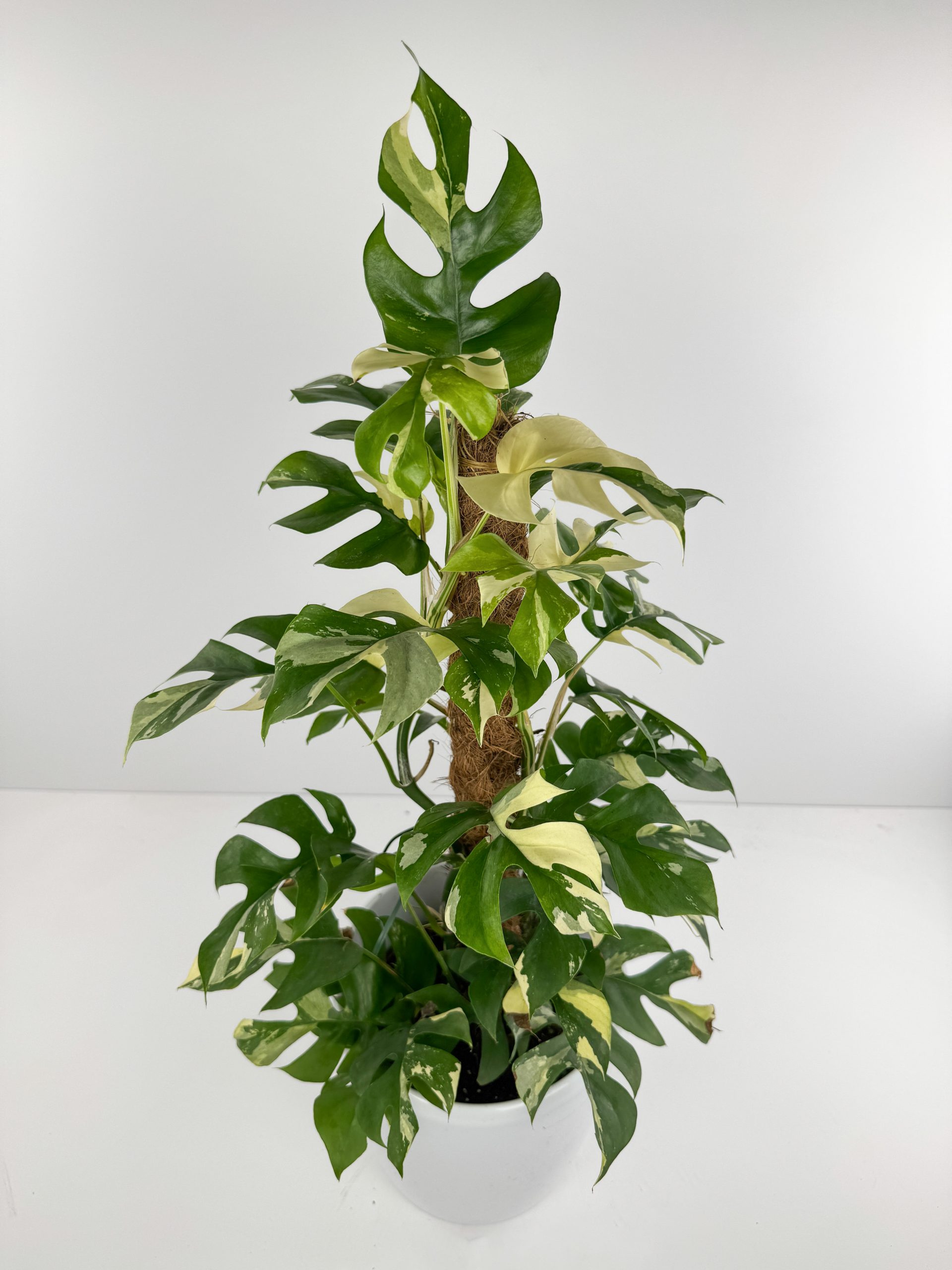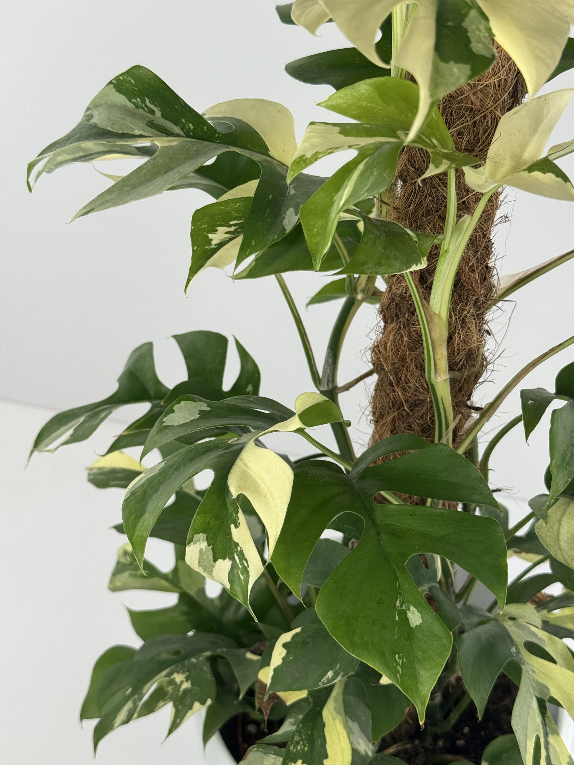 Die Rhaphidophora tetrasperma ‘Variegata’ ist die panaschierte Form der im Handel bekannten Mini-Monstera. Botanisch gehört sie nicht zur Monstera, sondern zur Gattung Rhaphidophora. In ihrer Heimat wächst sie kletternd im feucht-tropischen Klima. Charakteristisch sind die geschlitzten Blätter mit weißen bis cremefarbenen Partien, die je nach Blatt unterschiedlich stark ausfallen können.